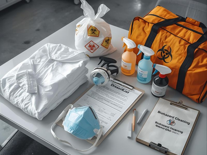 Quality equipment forms the backbone of safe biohazard cleaning operations. Essential equipment includes full-body protective suits, respiratory protection, and chemical-resistant gloves.